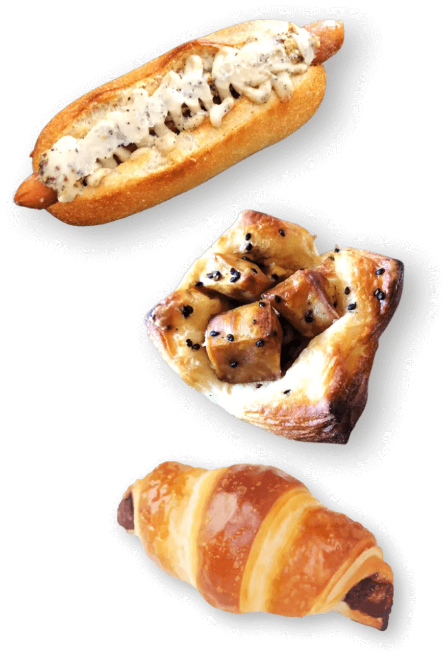この製法により「焼き立てより美味しい冷凍パン」との評判のお声をいただいています。