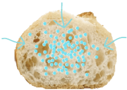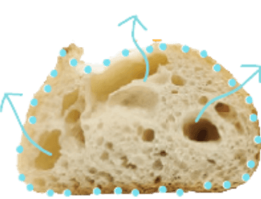 パンの内側に旨味と水分をぎゅっと閉じ込めるので、外は焼き立てのようにパリッと、内側はもちっとしています。